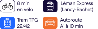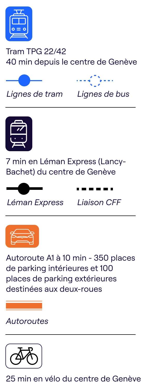 Situé au cœur de la ZIPLO, cette zone de 36 ha à Plan-les-Ouates – épicentre de la “Watch Valley” genevoise – réunissant 429 établissements, 12 259 emplois et 188 activités, L’Atelier bénéficie d’une accessibilité optimale, via l’autoroute A1 et un vaste réseau de pistes cyclables. Partez à la découverte d’un quartier où vie économique intense et qualité de vie ne font qu’un – bienvenue dans votre nouveau terrain de jeu professionnel.